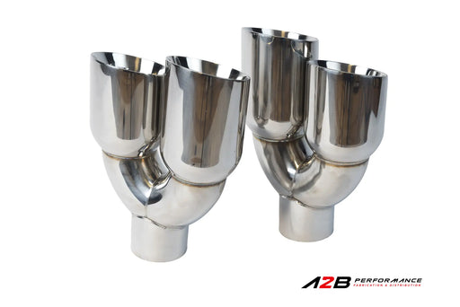 • Double paroi chromée Décalé. (Gauche/Droit)• Entrée : 2,5" • Sortie : 2x 3.5"• Construction en acier inoxydable T304 poli miroir